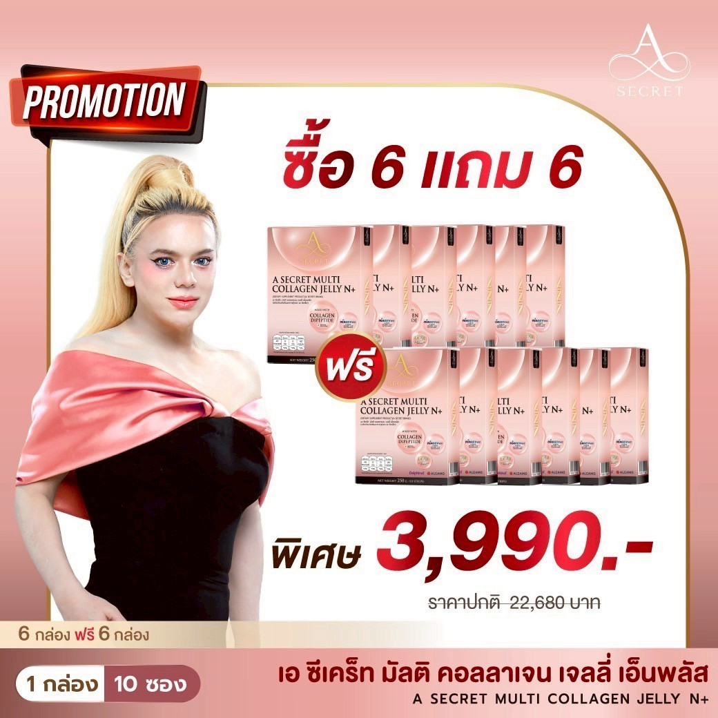 โปรโมชั่น A Secret Collagen Jelly N+ 6 แถม 6 กล่อง ราคา 3,990.-