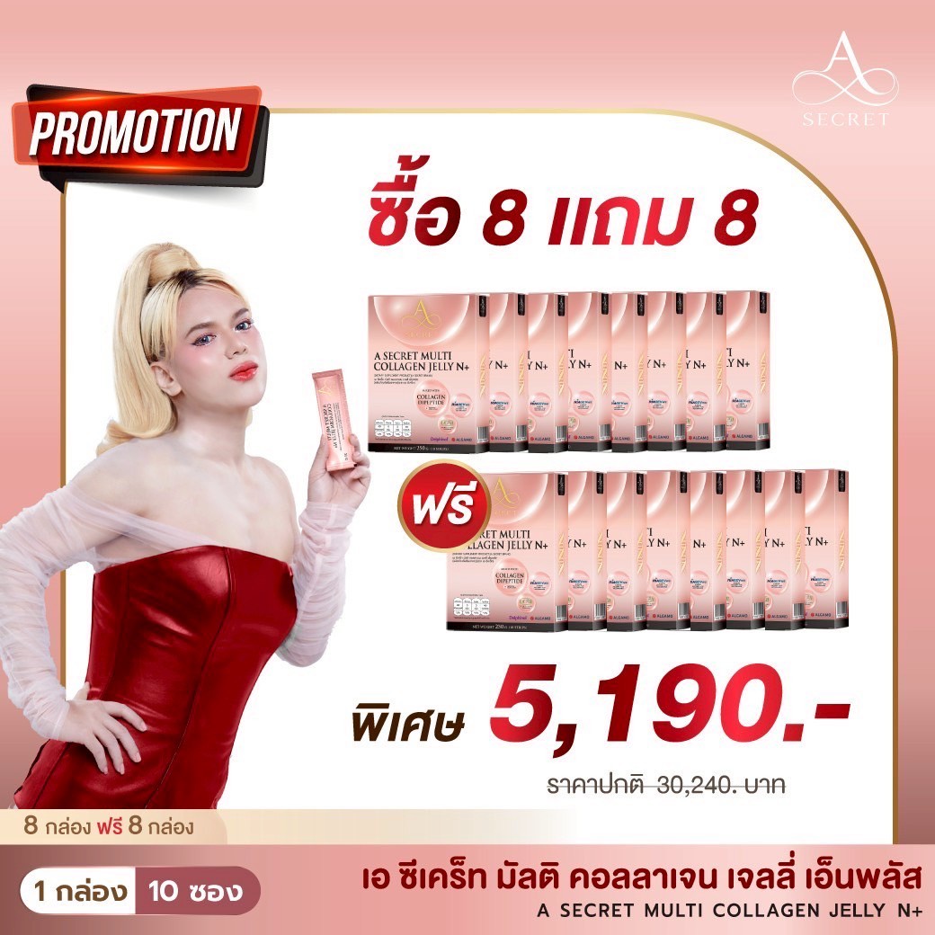 โปรโมชั่น A Secret Collagen Jelly N+ 8 แถม 8 กล่อง ราคา 5,190.-