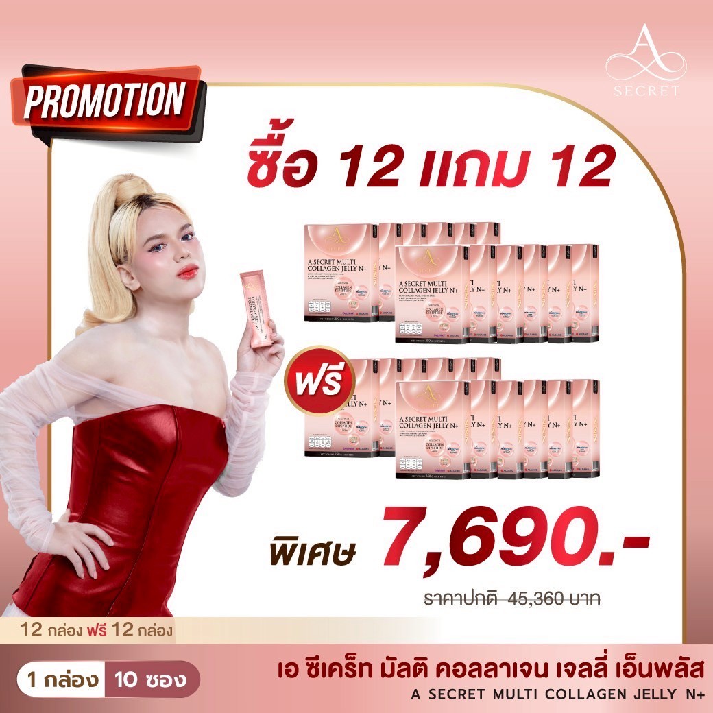 โปรโมชั่น A Secret Collagen Jelly N+ 12 แถม 12 กล่อง ราคา 7,690.-
