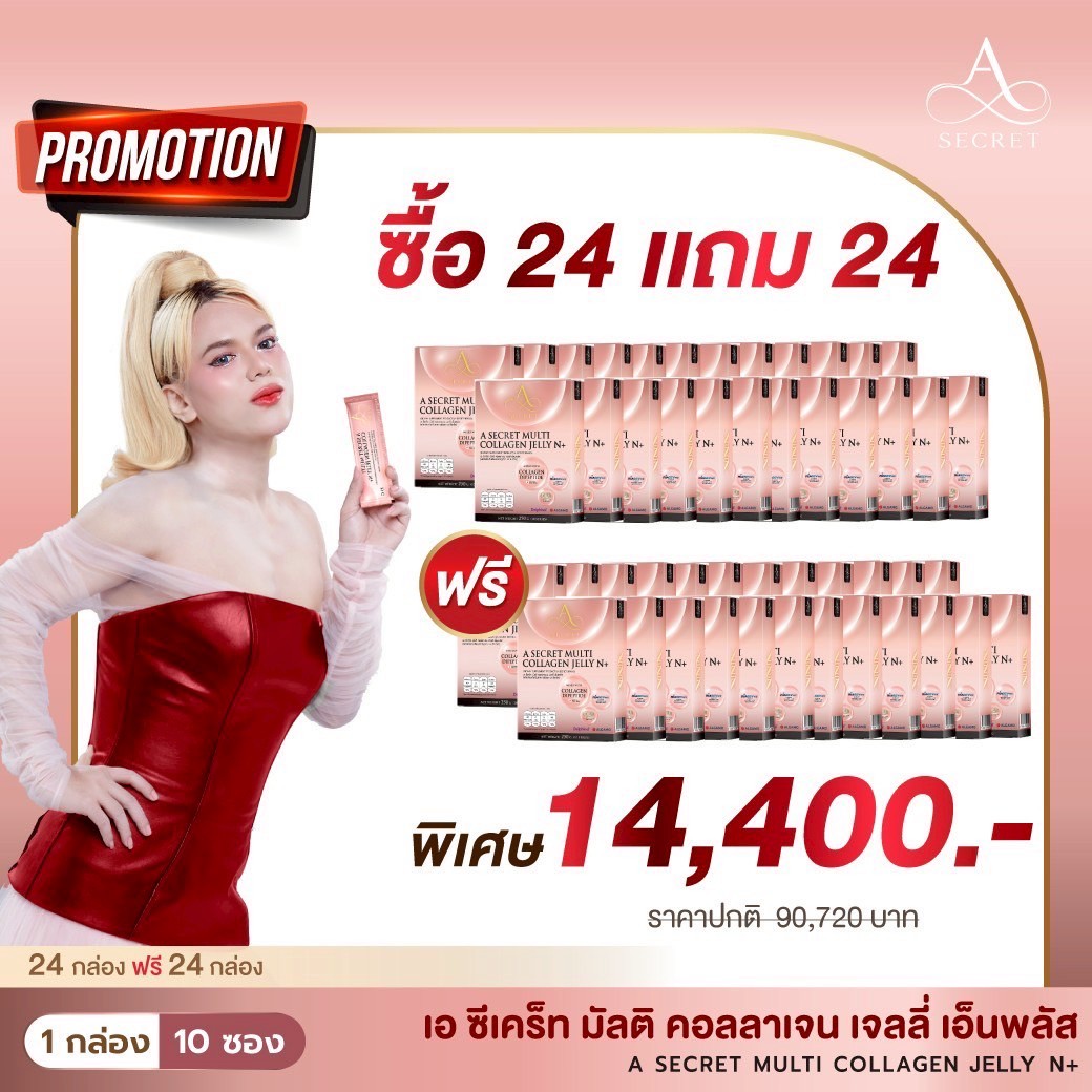 โปรโมชั่น A Secret Collagen Jelly N+ 24 แถม 24 กล่อง ราคา 14,400.-