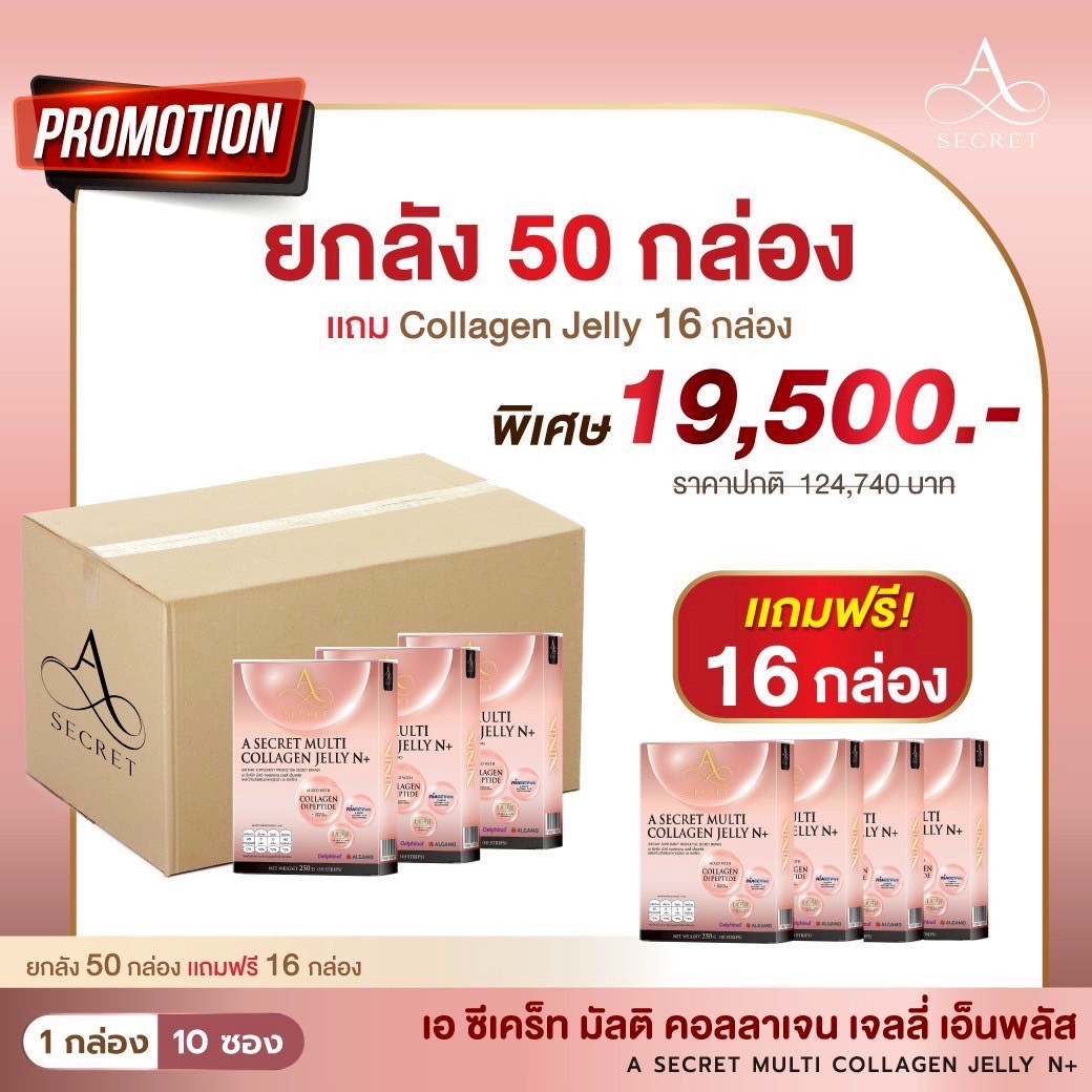 โปรโมชั่น A Secret Collagen Jelly N+ ยกลัง 50 กล่อง แถม 16 กล่อง ราคา 19,500.-