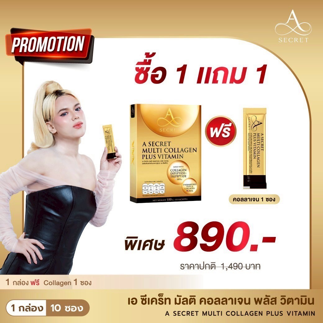 โปรโมชั่น A Secret Collagen 1 แถม 1 ซอง ราคา 890.- ส่งฟรี