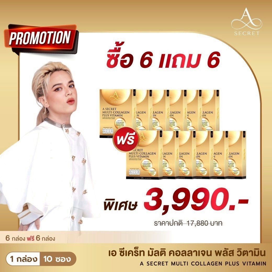 โปรโมชั่น A Secret Collagen 6 แถม 6 กล่อง ราคา 3,990.- ส่งฟรี