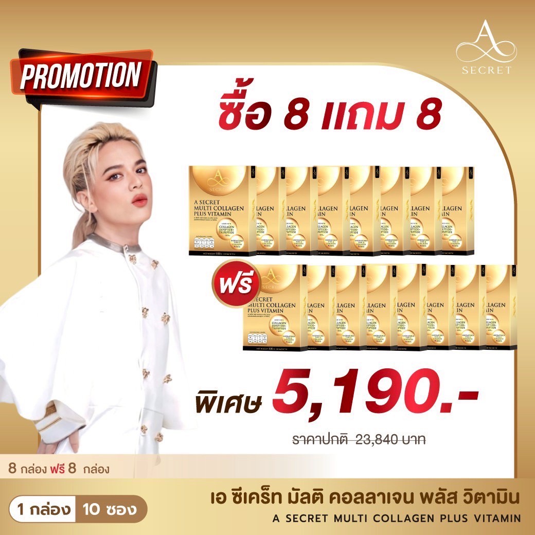 โปรโมชั่น A Secret Collagen 8 แถม 8 กล่อง ราคา 5,190.- ส่งฟรี