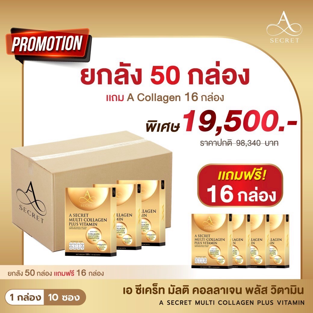 โปรโมชั่น A Secret Collagen ยกลัง 50 กล่อง แถม 16 กล่อง