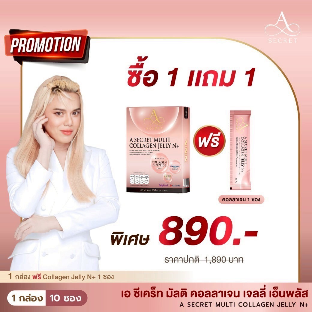 โปรโมชั่น A Secret Collagen Jelly N+ 1 แถม 1 ซอง ราคา 890.-