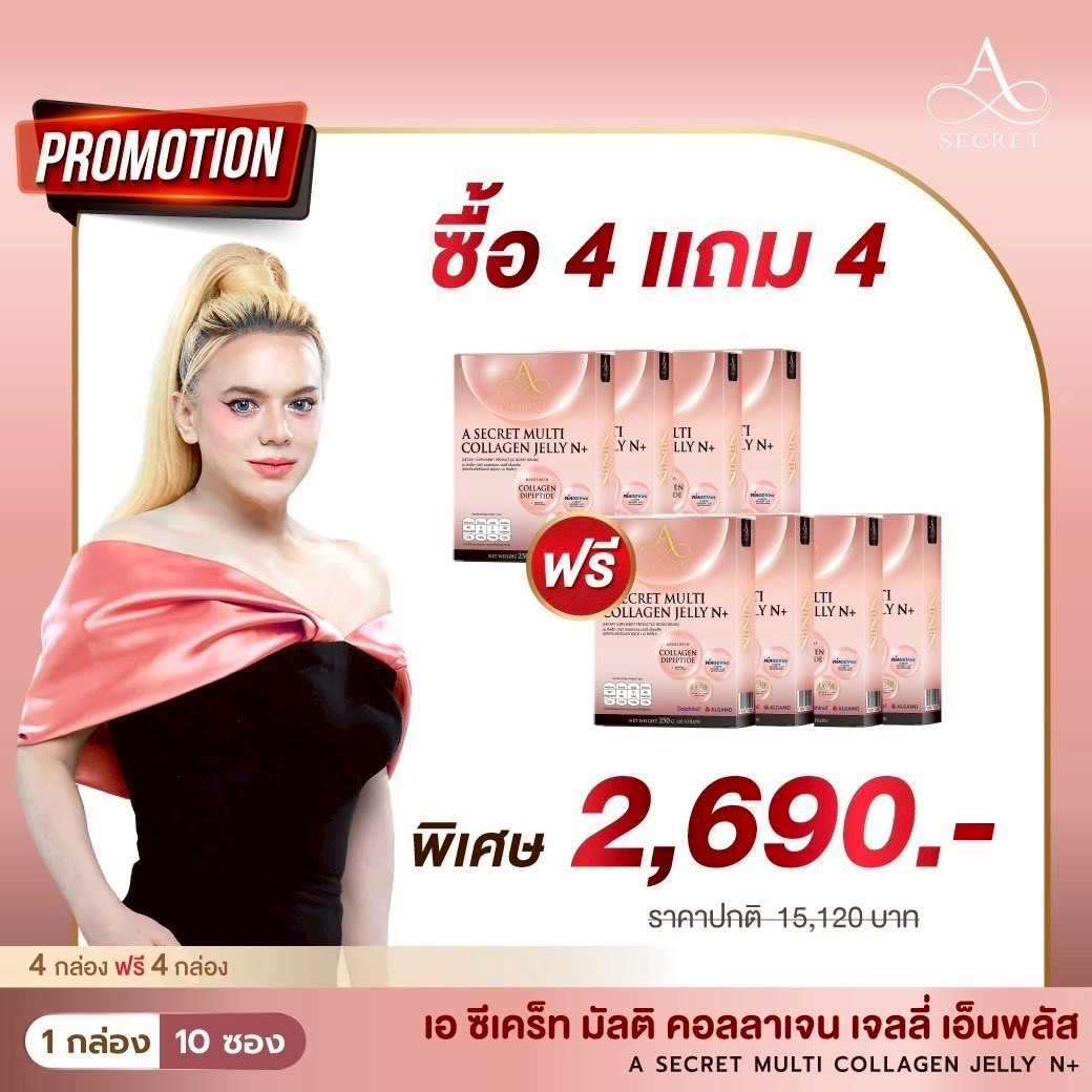 โปรโมชั่น A Secret Collagen Jelly N+ 4 แถม 4 กล่อง ราคา 2,690.-
